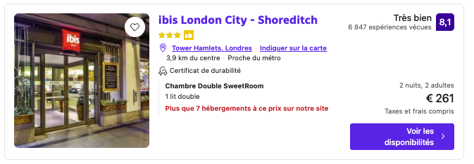 L’Ibis London City – Shoreditch (65,25€/nuit/personne) offre un refuge moderne dans le quartier branché de Shoreditch, idéal pour explorer les marchés festifs de Southbank tout en profitant d’un confort abordable. 🌟