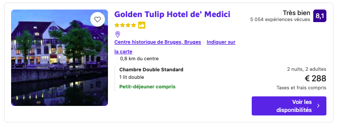 🏨 Logements Recommandés à Bruges