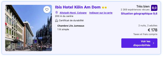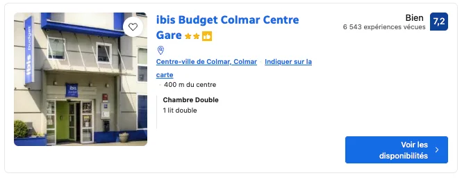 L’Ibis Budget Colmar Centre Gare, à seulement 70 €/nuit/personne, est central et pratique pour plonger directement dans l’ambiance festive sans perdre de temps.