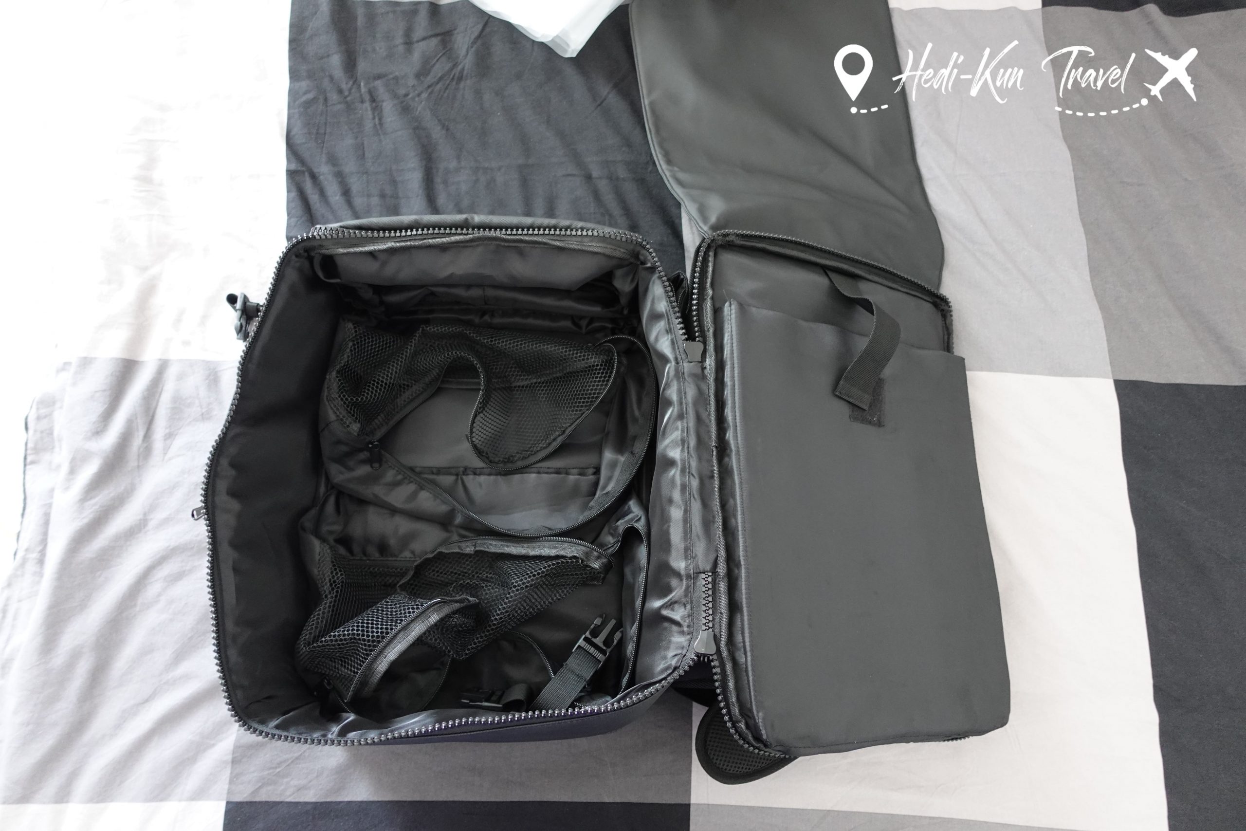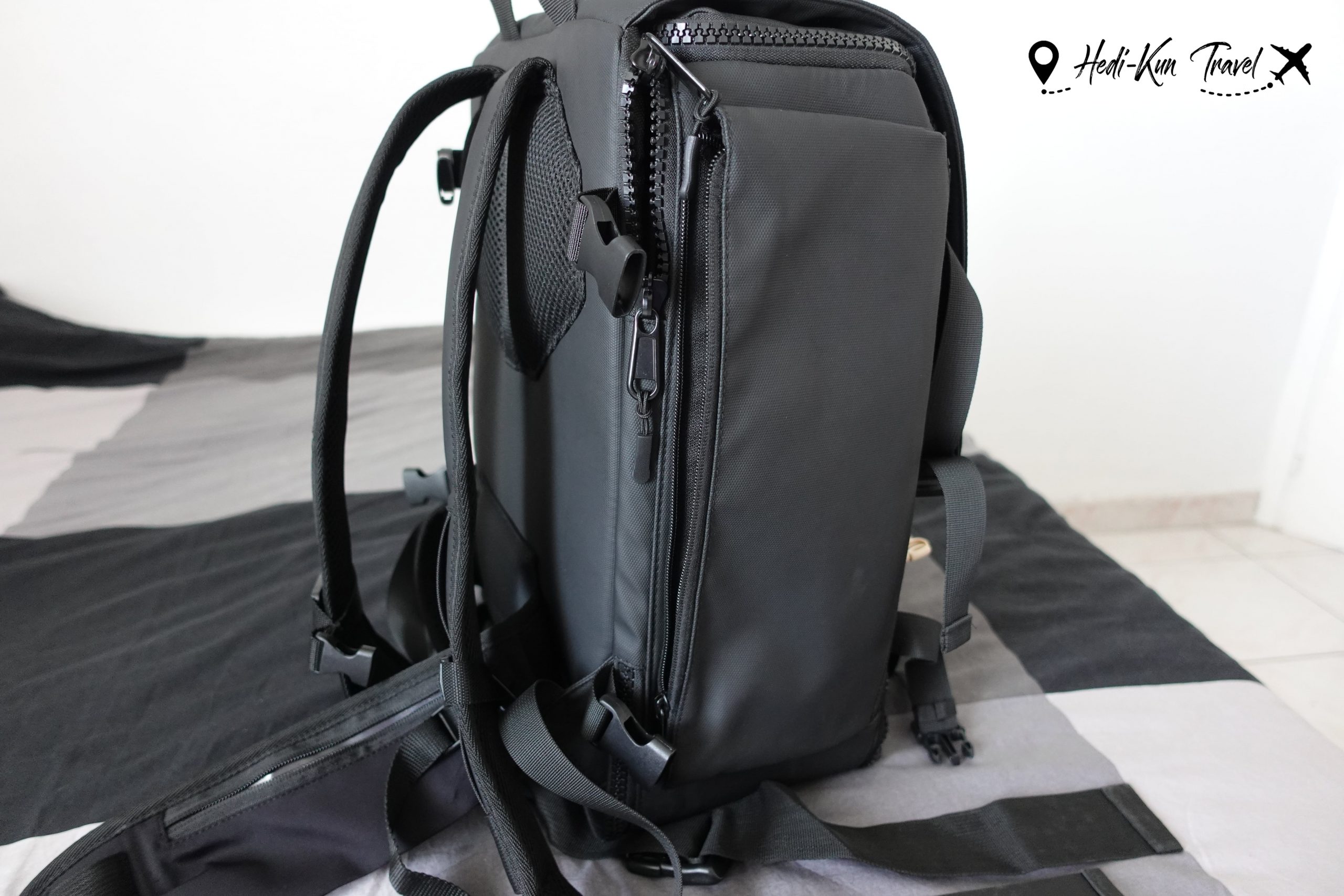 Ce sac est conçu pour s’adapter à différents formats de voyage, avec une grande flexibilité au niveau du rangement. Les poches à vide, très pratiques, permettent de mieux organiser ses affaires et de compresser efficacement le contenu du sac.